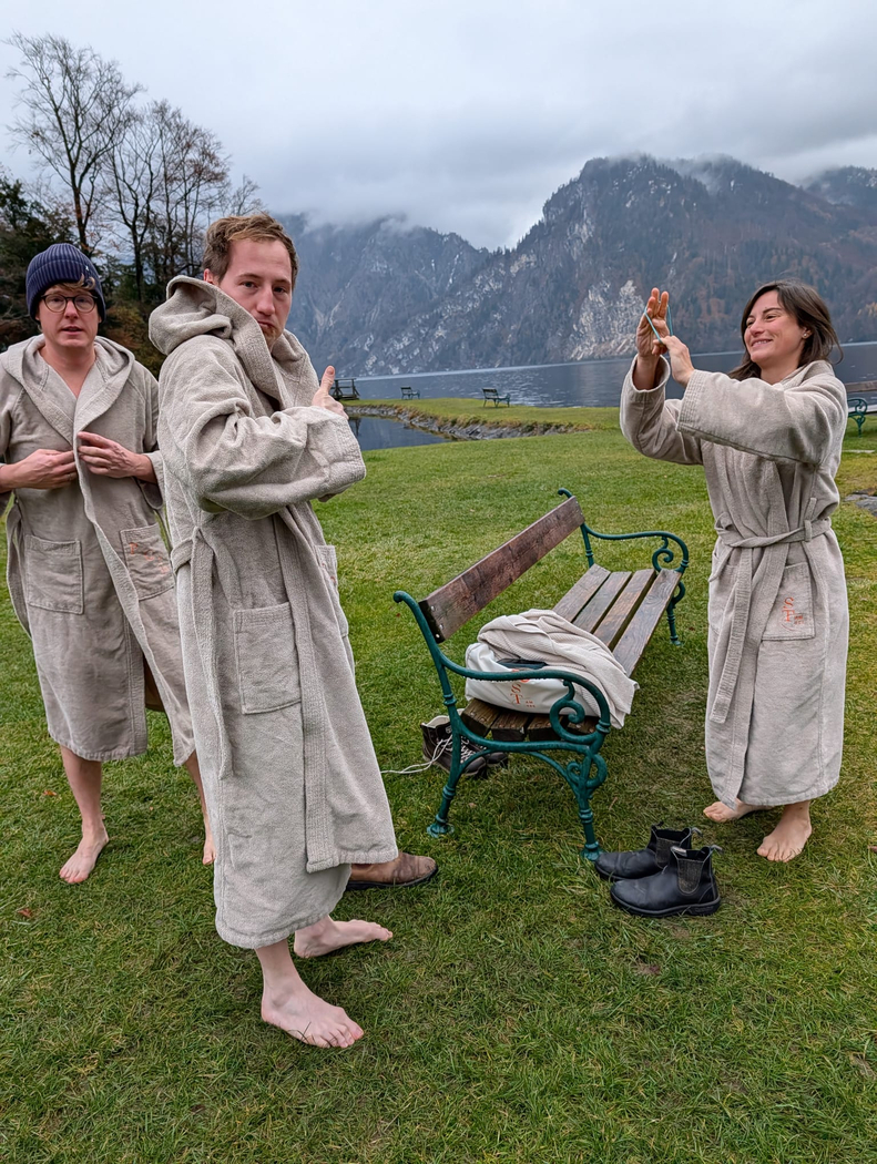 Stattgefunden hat die Einkehr diesmal im Salzkammergut, am schönen Traunsee, inmitten beeindruckender Berge. Im Hotel Post Traunkirchen hielt die Eigentümerfamilie Gröller höchst komfortable Zimmer für uns bereit. Manche sollen sogar eine eigene Sauna im Zimmer gehabt haben, Genaueres weiß man nicht …